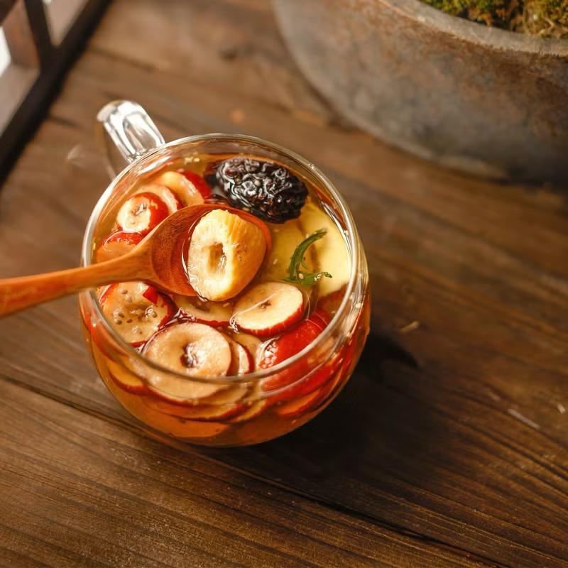 桂圓、紅棗、枸杞、甜菊葉、小紅莓、黑糖、乾薑絲、肉桂、月見草、南棗、蜜棗、奇亞籽、蘋果乾、雪梨乾。